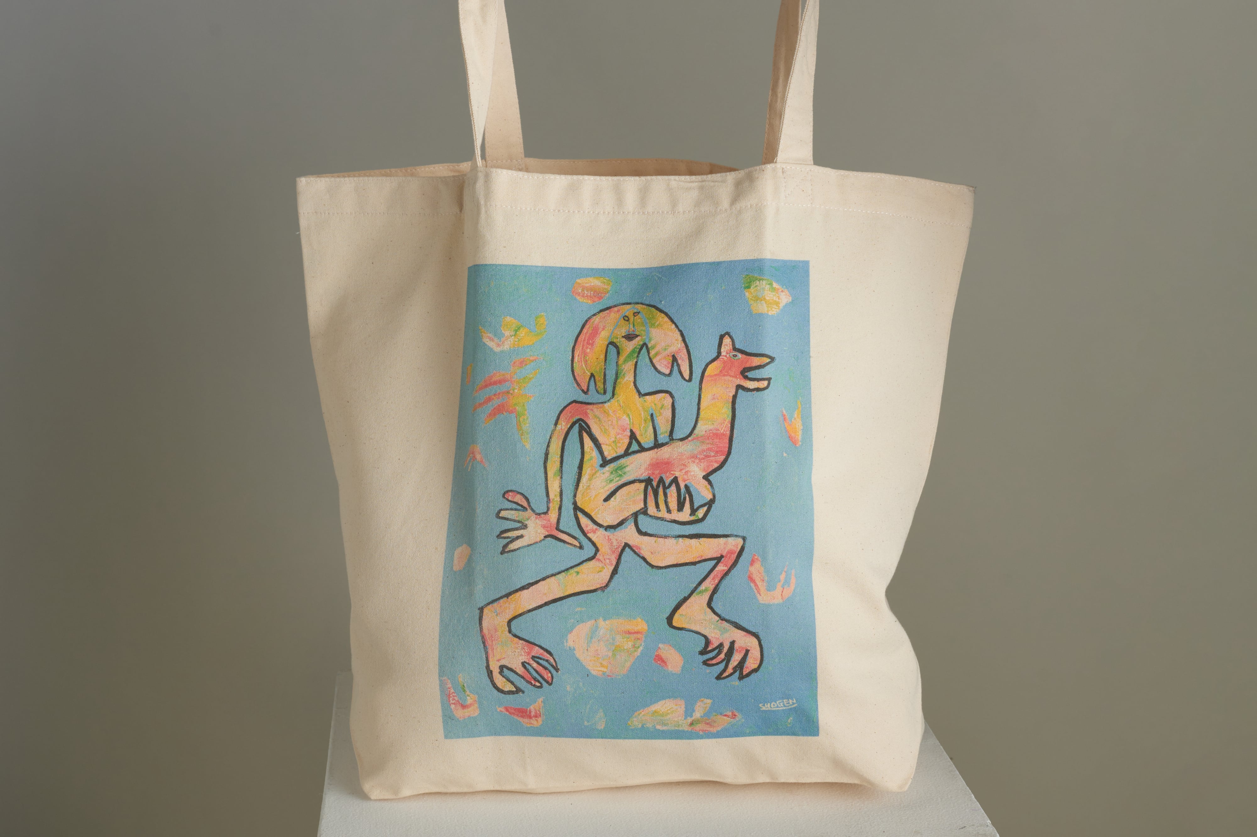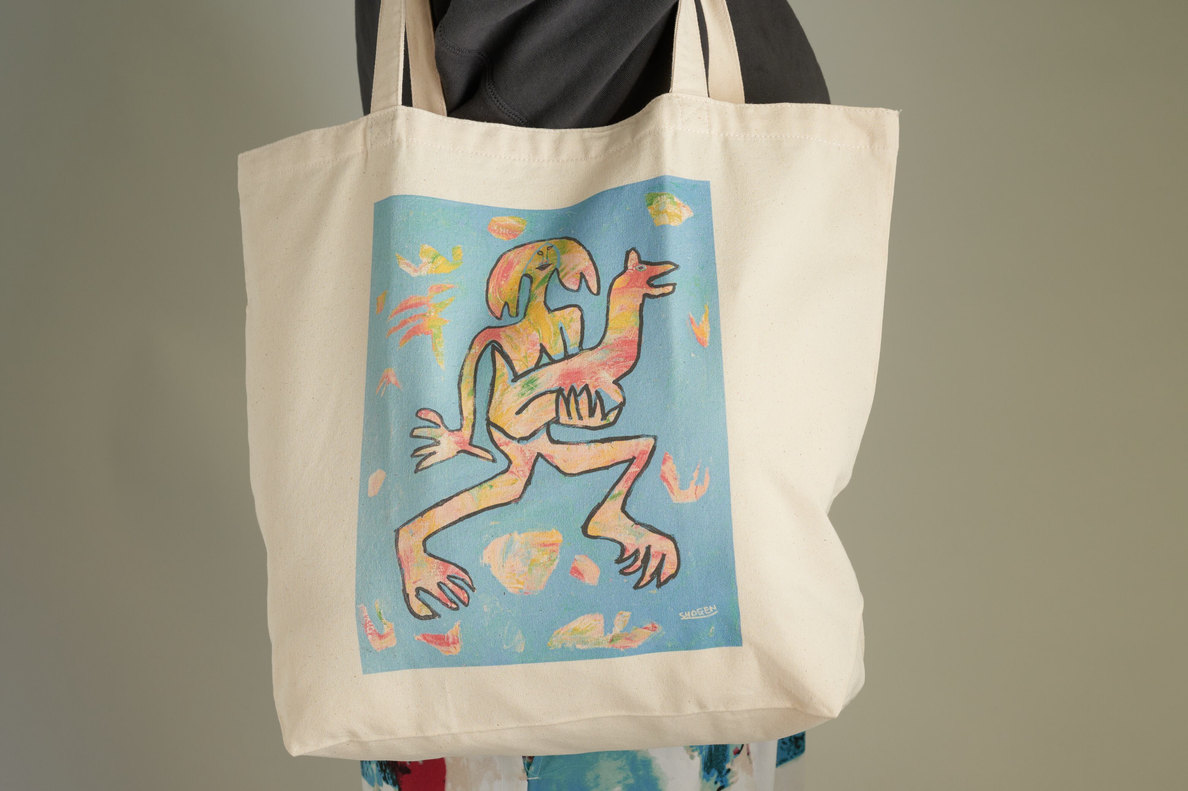 2024年6月東京青梅市でペンキ画家SHOGENがライブペインティングにて描いた絵 タイトル「時を待つ女」を片面中央に大きくプリント。